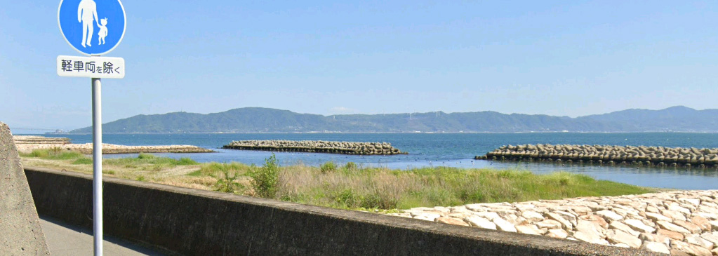 | グーグルのストリートビューの画像。対岸は淡路島。 ↓ |