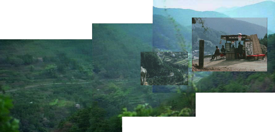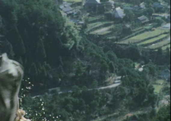 「銭形平次(大川橋蔵版)」の「第627話 兇悪犯護送」(1978年)のシーン。神明峠あたりから見下ろした京都市右京区嵯峨水尾の集落だと思う。