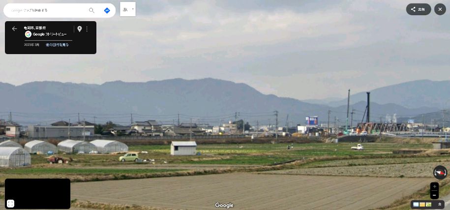 | 現地のやや南から取得したグーグル・ストリートビューの画像。 ↓ |