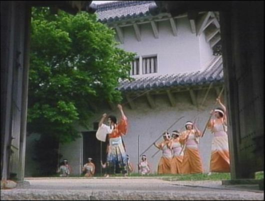 | 彦根城の天秤櫓。ロケ協力クレジットあり。 ↓ |