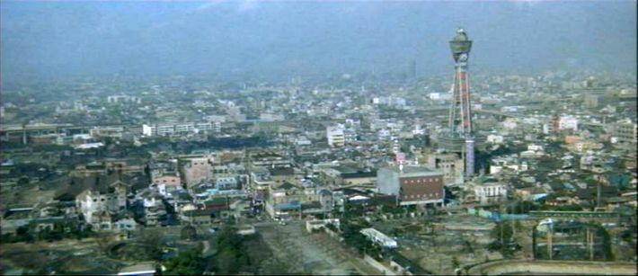 | 「大阪市天王寺区茶臼山町」の天王寺公園上空から通天閣を見る。 ↓ |