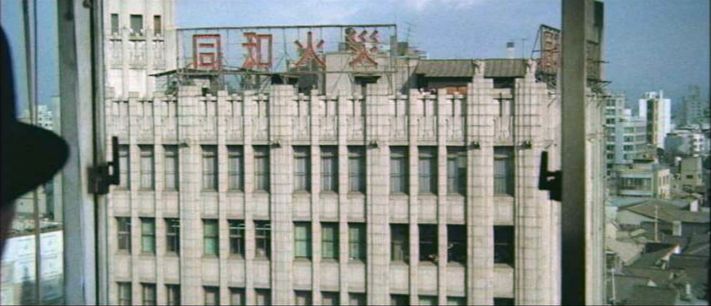 | 「大阪市北区西天満」の同和火災ビル。カメラは道を挟んで西隣りのビルの一室。 ↓ |