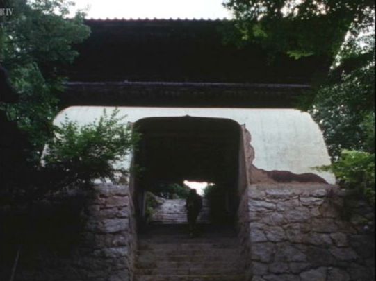同寺中門。奥に見えるのは愛宕社。