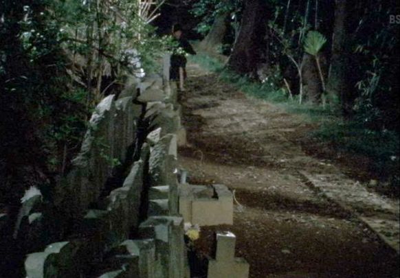 | −以下2025/08/21補足− 「神奈川県川崎市多摩区枡形6丁目」の広福寺西の、墓地へ続く道だと思う。個人撮影画像によれば、同寺にはこういう墓石の並んだ道がある。 ↓ |