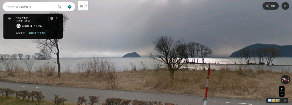 「滋賀県長浜市湖北町今西」あたりの琵琶湖岸。