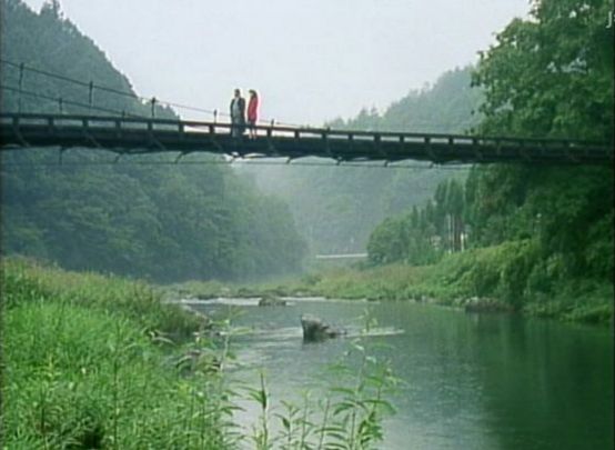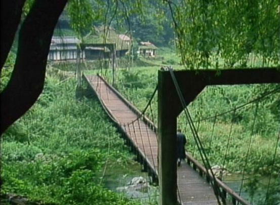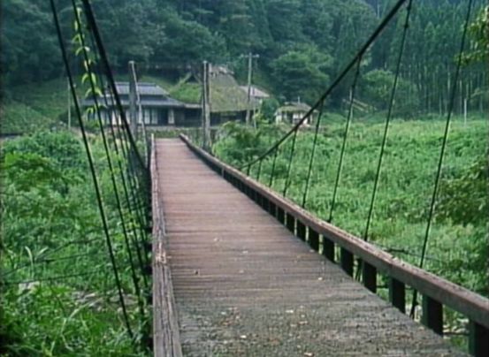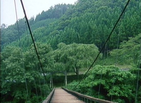 「京都市右京区京北周山町山キハ」の魚ヶ渕吊り橋。