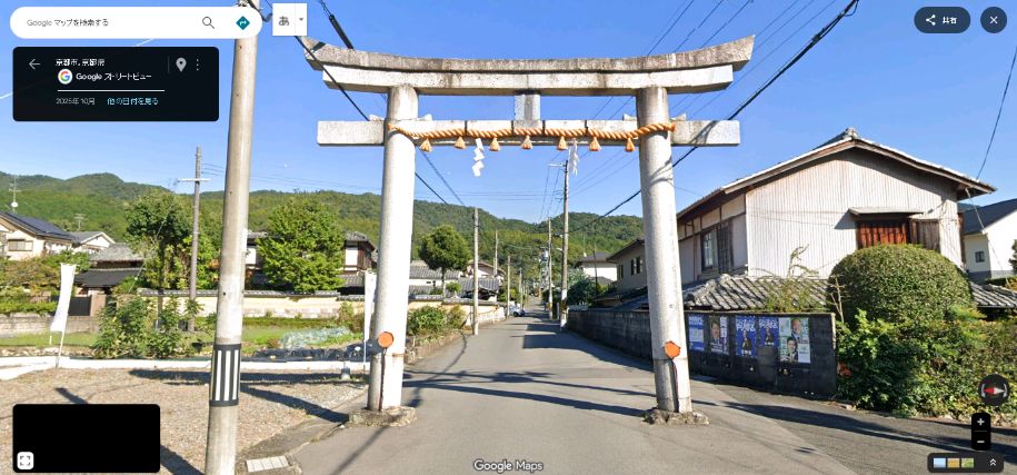 | 「京都市左京区岩倉長谷町」の長谷八幡宮の一の鳥居。なおこの民家はすで取り壊されて存在しない。 ↓ |