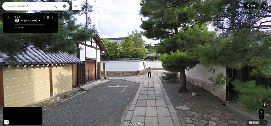 妙心寺の塔頭・春光院の南沿いの路地。消火栓を植栽で隠している。