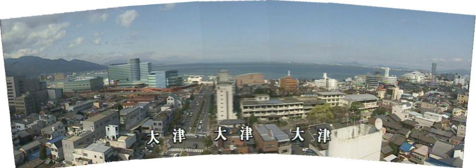 大津市の中央大通りの高いビルから見た琵琶湖。