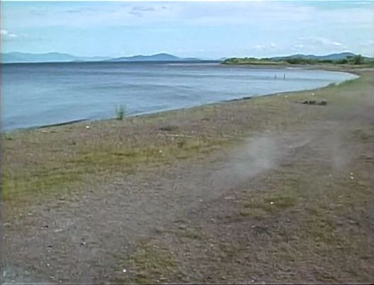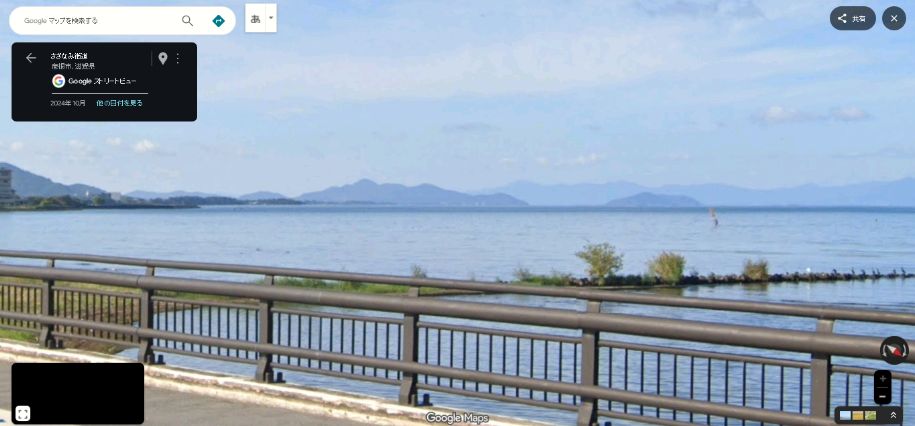 | 「滋賀県高島市安曇川町下小川」あたりの琵琶湖岸から南を見ている。「次郎長三国志」と同じ場所。 ↓ |