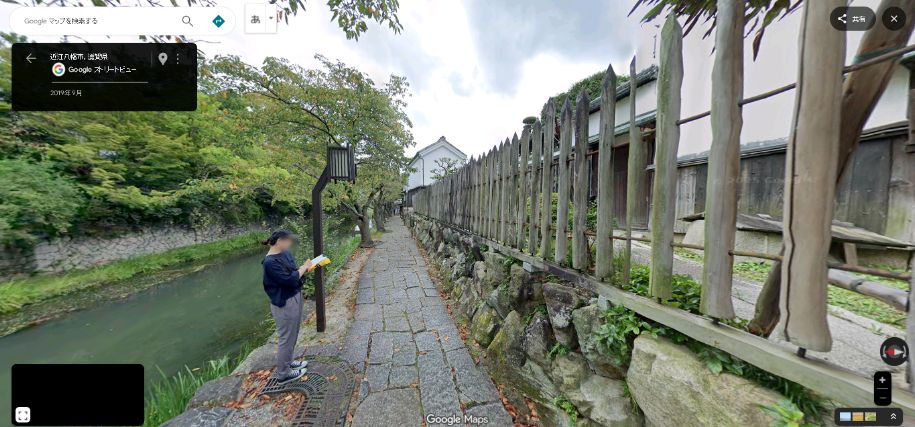 | 明治橋の東の八幡堀南沿いの民家。 ↓ |