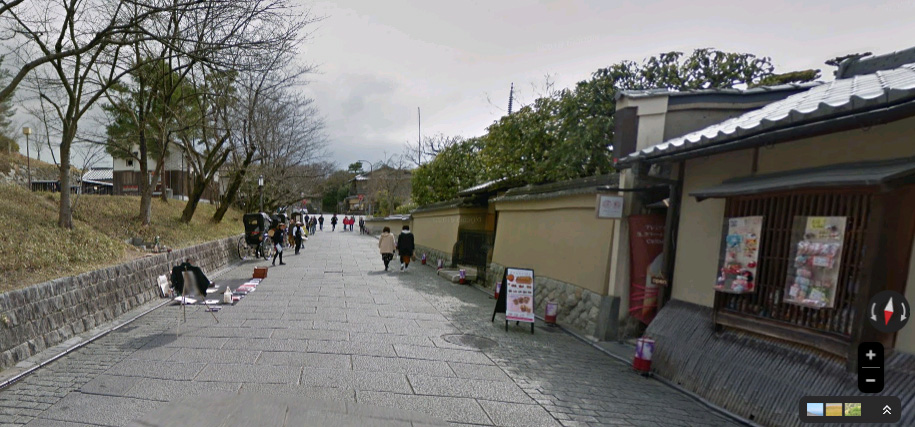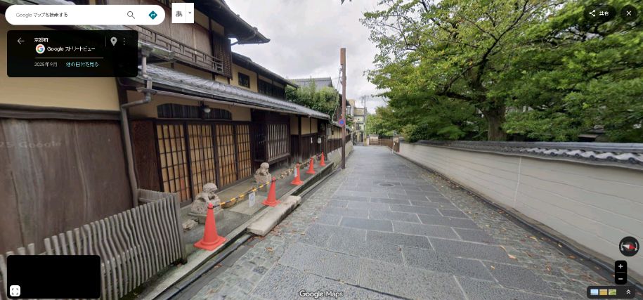 | 「京都市東山区祇園町南側」の大雲院南東沿いの道。 ↓ |