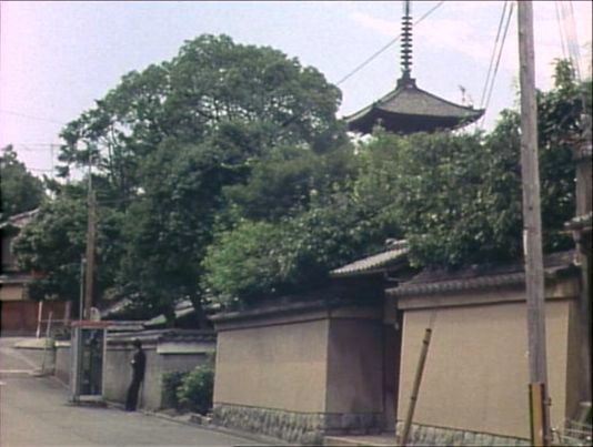 | 三面大黒天前の道を南へ行った所から八坂塔を見る。 ↓ |