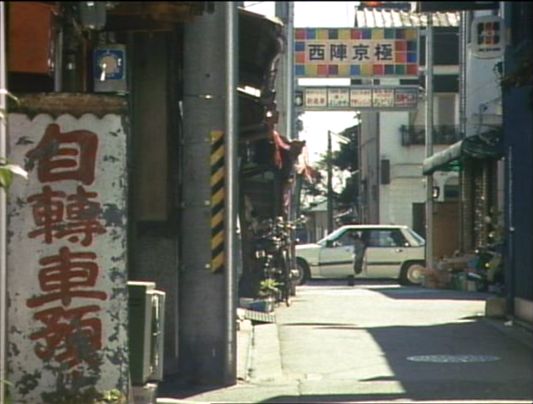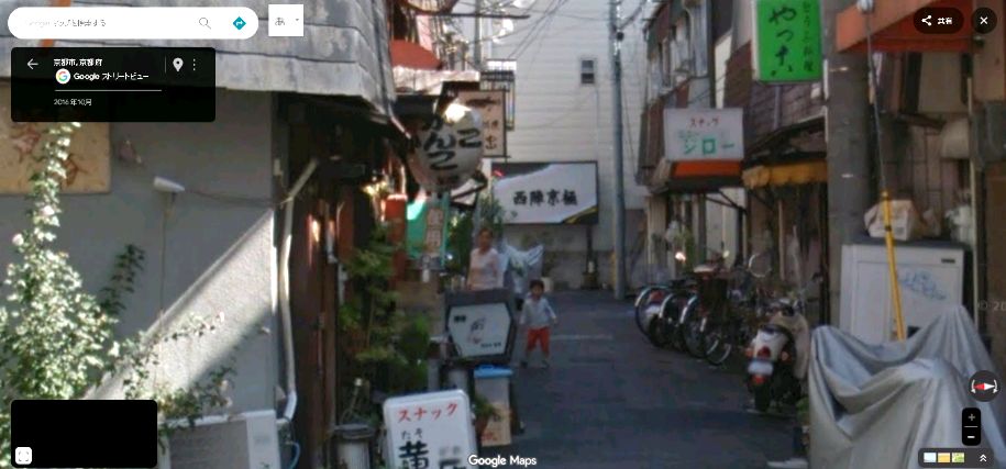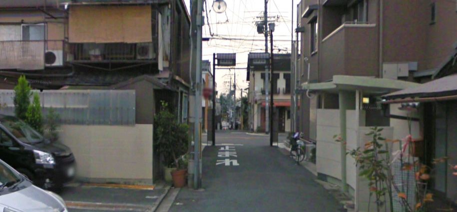 | 「京都市中京区桜之町」の京都ロキシー(1999年閉館・跡地はMOVIX京都北館)南沿いの道。 ↓ |