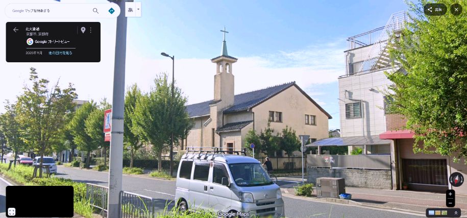 | 「京都市左京区下鴨東森ケ前町」のカトリック高野教会。 ↓ |