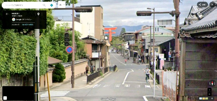 | 「京都市東山区粟田口三条坊町」から平安神宮大鳥居を見る。 ↓ |