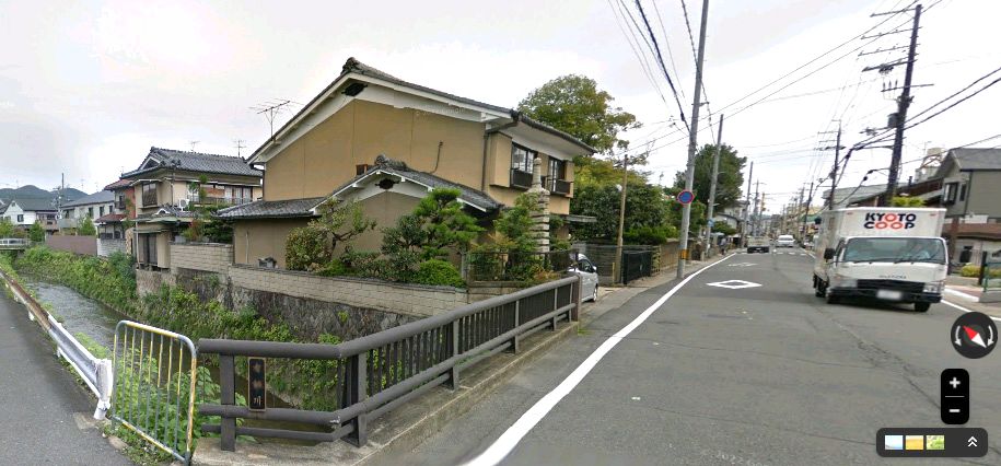 | グーグルのストリートビューの画像。現地は変貌著しく「このあたりであろう」という場所。 ↓ |