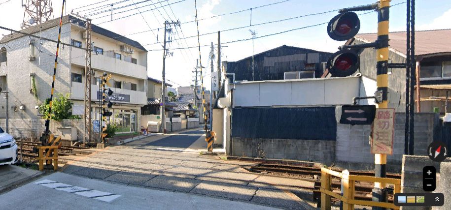 | 「京都市右京区太秦桂ケ原町」の京福電鉄の踏切。 ↓ |