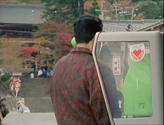 | 叡山電鉄・鞍馬駅前。駅前からは鞍馬寺が見えないので、公衆電話は撮影用の小道具らしい。 ↓ |