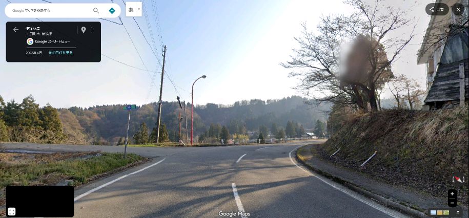 「新潟県十日町市小白倉」のキャンパス白倉(旧白倉小学校)横の県道。 ↓ |