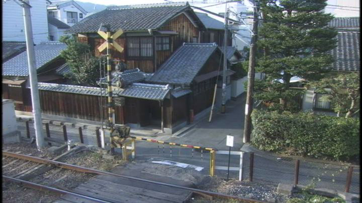 「京都市左京区上高野隣好町」の叡山電鉄の鉄橋。ロケ協力クレジットあり。 ↓ |