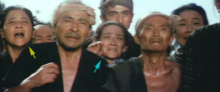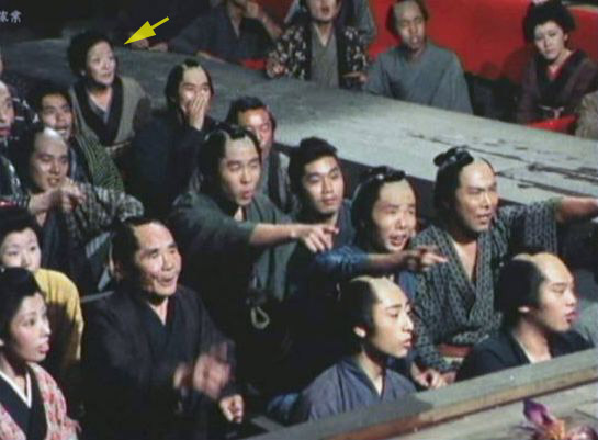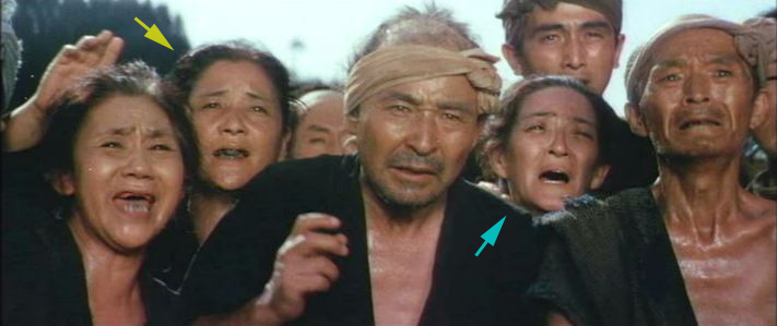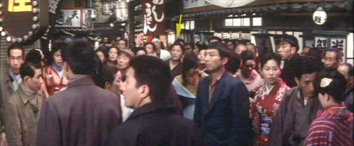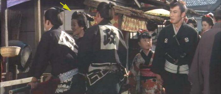 | *「座頭市牢破り」には、「三星東美(黄色い矢印)」と「木枯し紋次郎のお婆ちゃん女優さん(水色の矢印)」が同時に映っているので、この方は「三星東美」ではないことが判明。 |