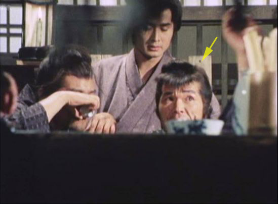 | 「銭形平次(大川橋蔵版)」の「第660話 迷い橋・想い川」(1979年)の出水憲司。色が赤いのは演出。 |