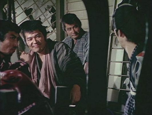 | 「おしどり右京捕物車」の「第20話 怨(うらむ)」(1974年)の出水憲司。右端。 |