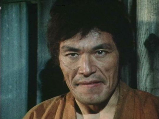 | 「新・座頭市(第1シリーズ)」の「第6話 師の影に泣いた」(1976年)の出水憲司。奥のススけた顔。 |