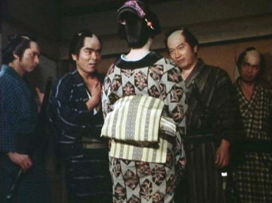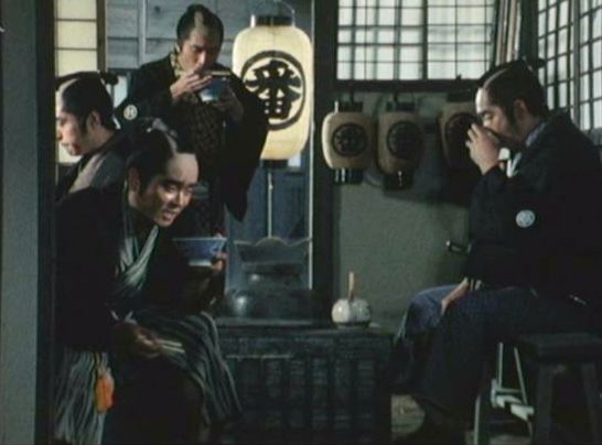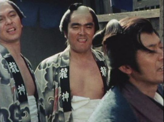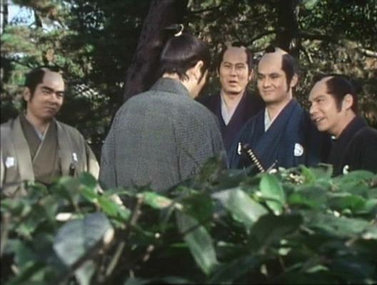 | 「新・座頭市(第3シリーズ)」の「第10話 市の茶碗」(1979年)の黛康太郎。(筑波健名義)。右から2人目。 |