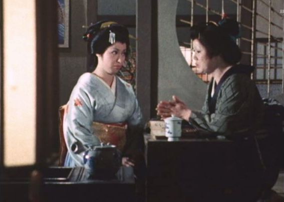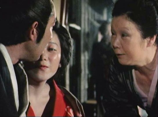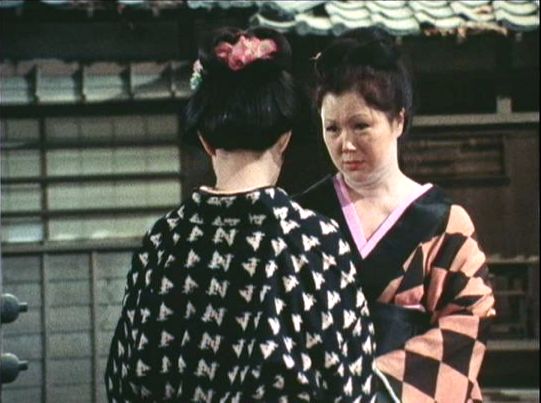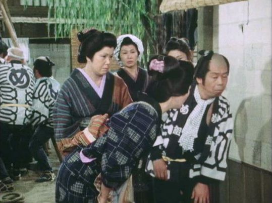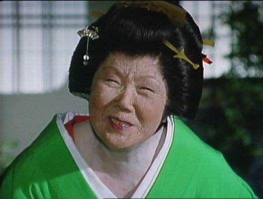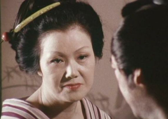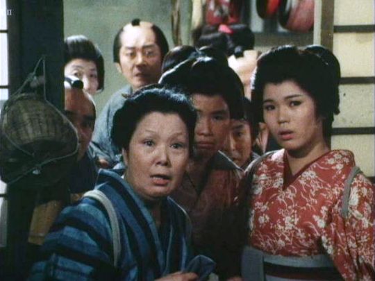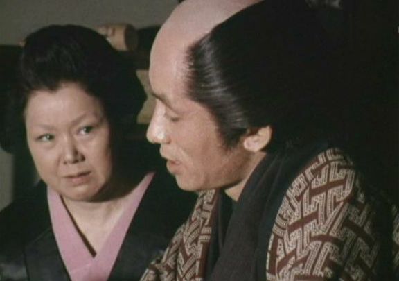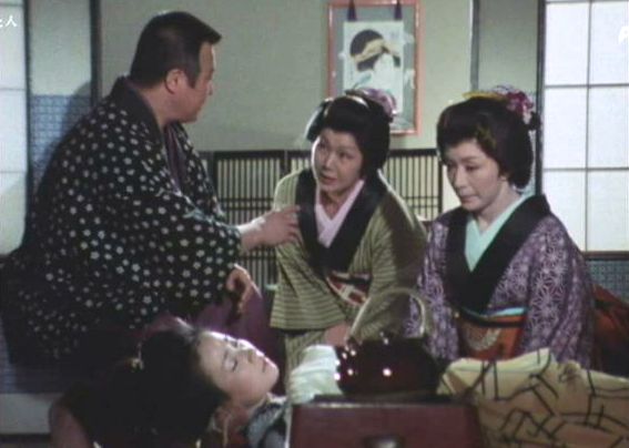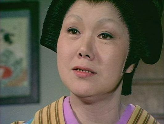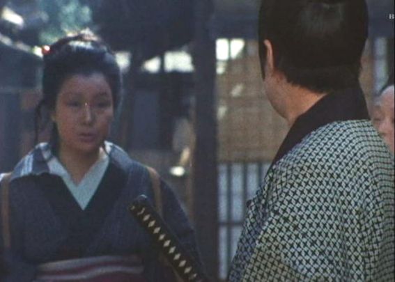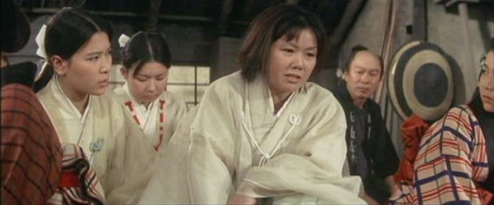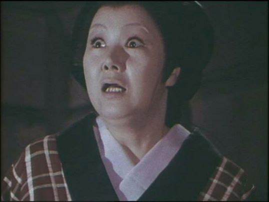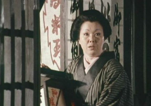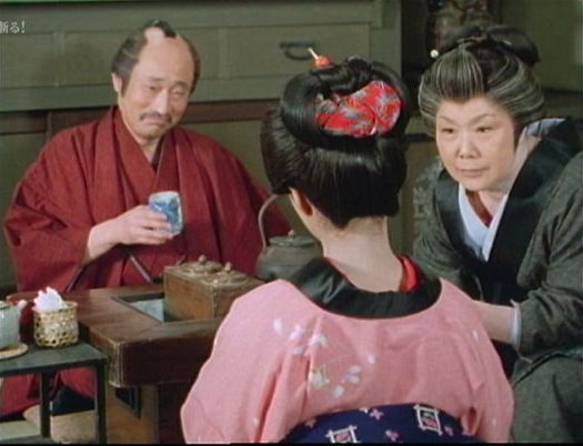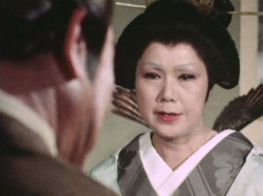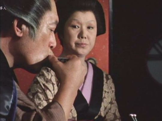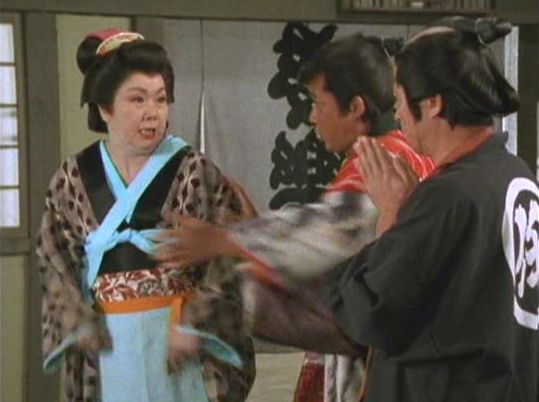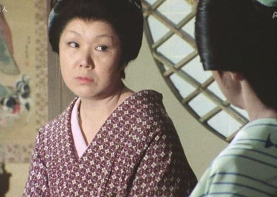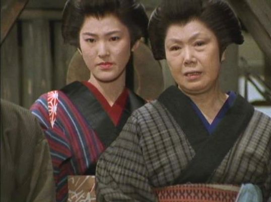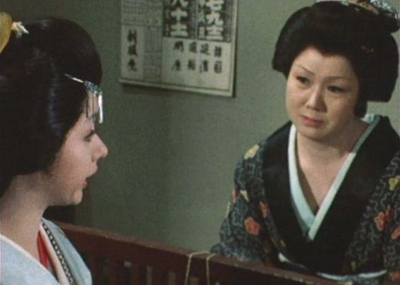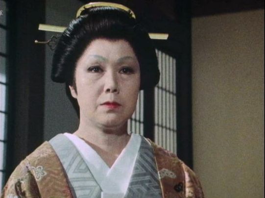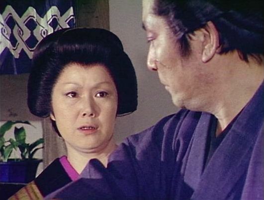 | 「軍兵衛目安箱」の「第2話 陽の当たる町」(1971年)の小柳圭子。片岡千恵蔵の嫌そうな顔が笑いを誘う。 |