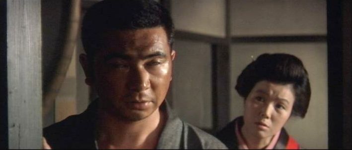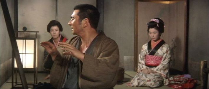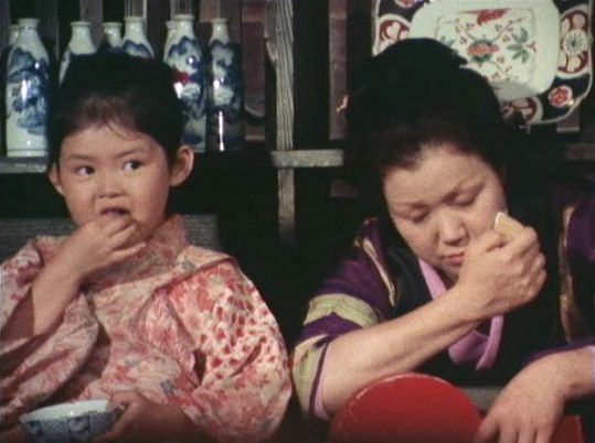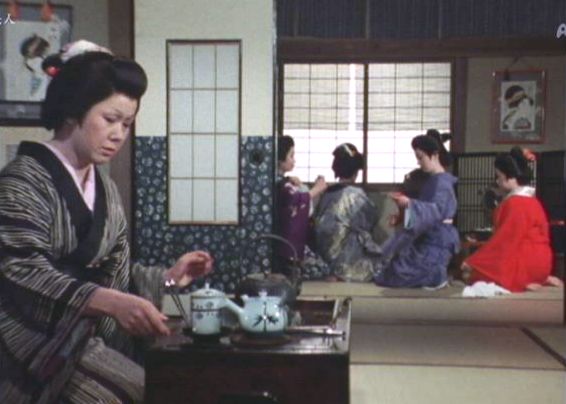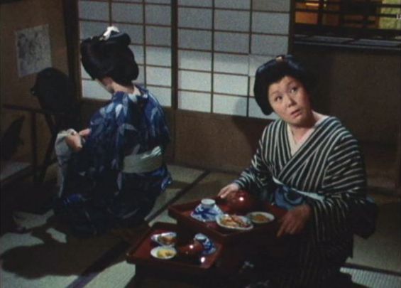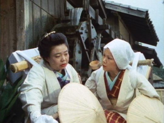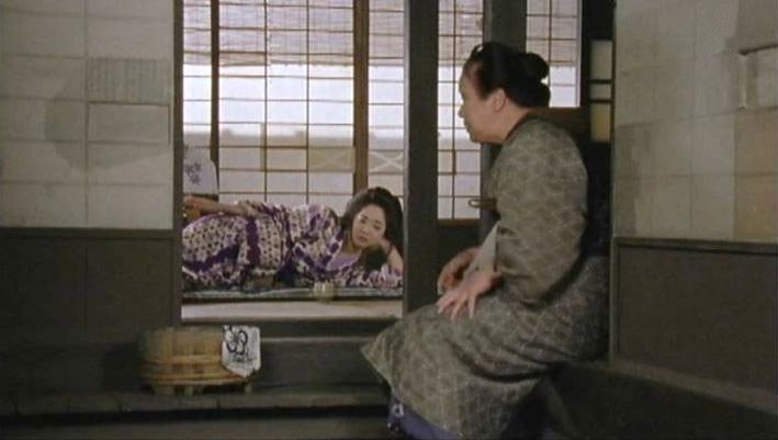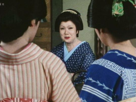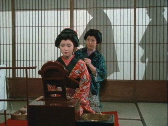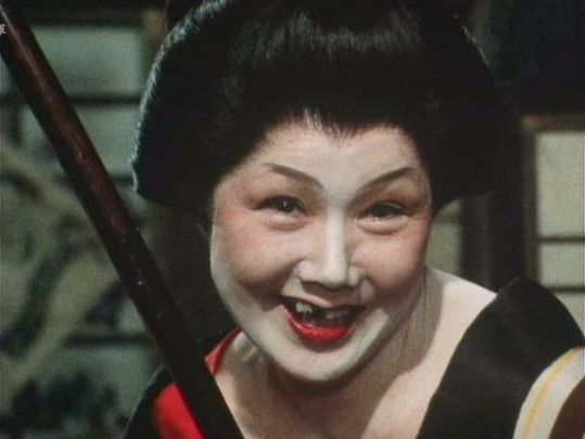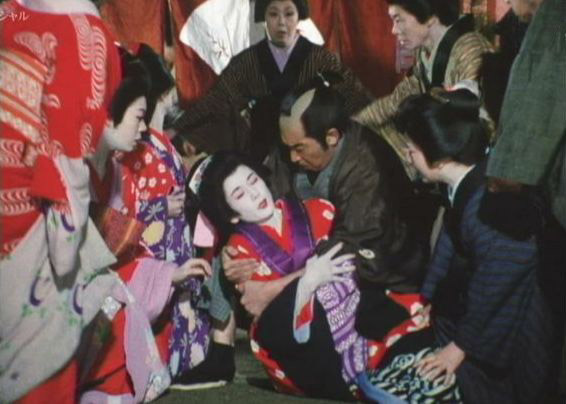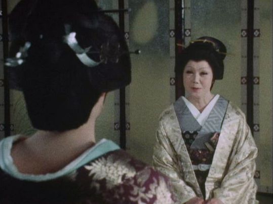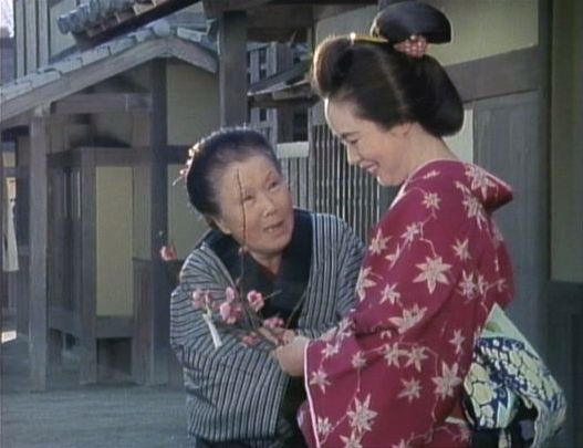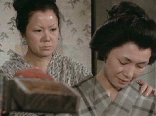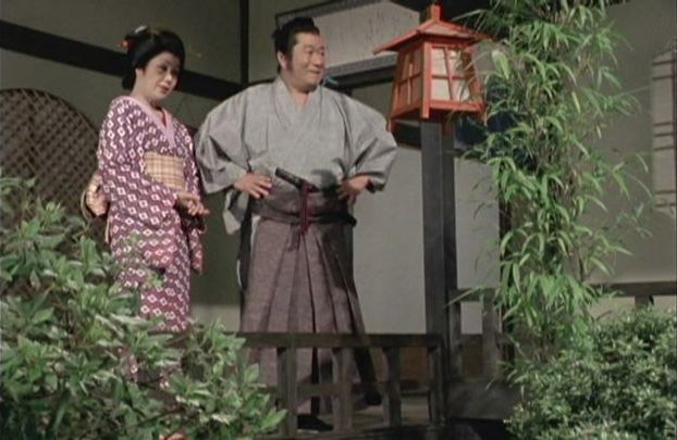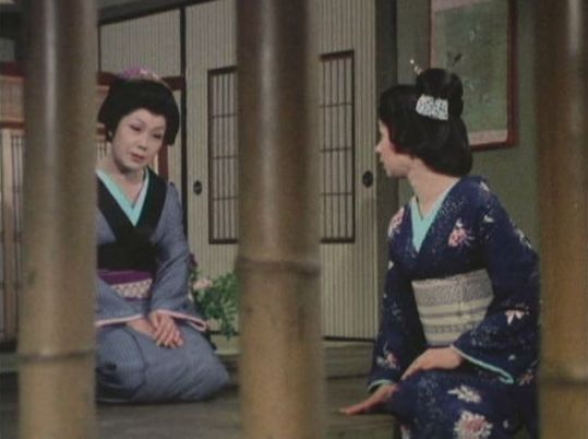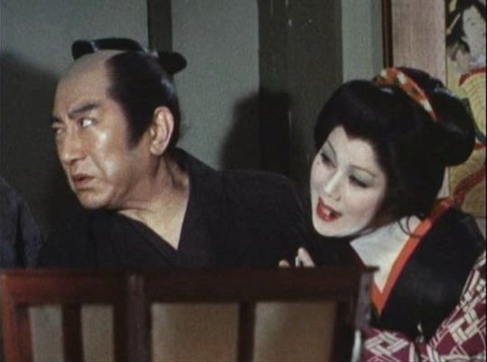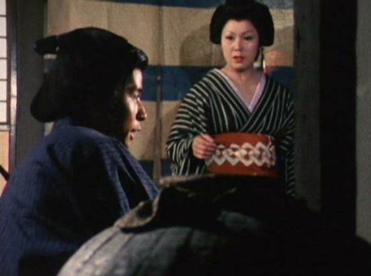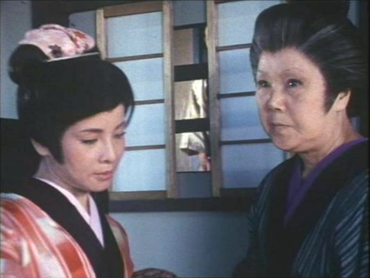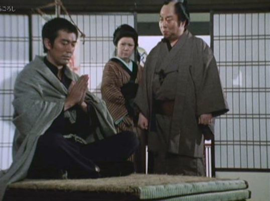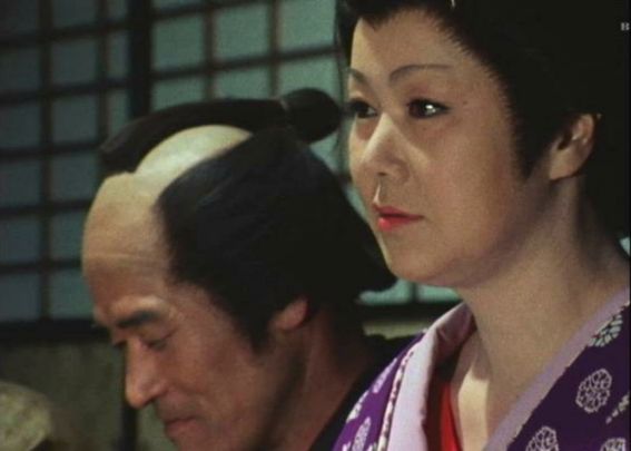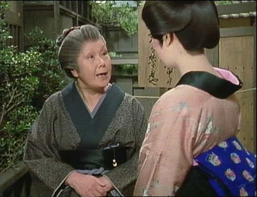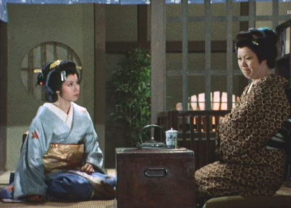 | 「軍兵衛目安箱」の「第2話 陽の当たる町」(1971年)の小柳圭子。片岡千恵蔵の嫌そうな顔が笑いを誘う。 |