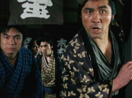 | 映画「座頭市関所破り」(1964年)の花岡秀樹らしき人。右端の人。 |
