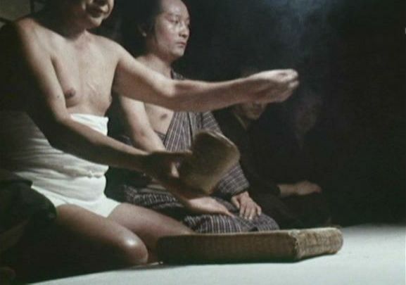 | 「座頭市物語」の「第24話 信濃路に春は近い」(1975年)の美樹博。中央の籠かき。 |