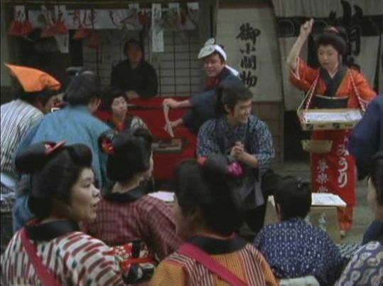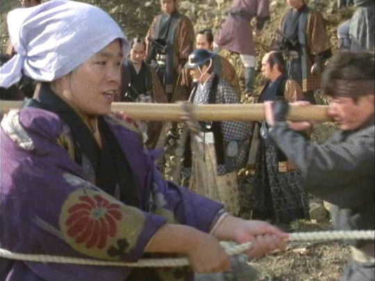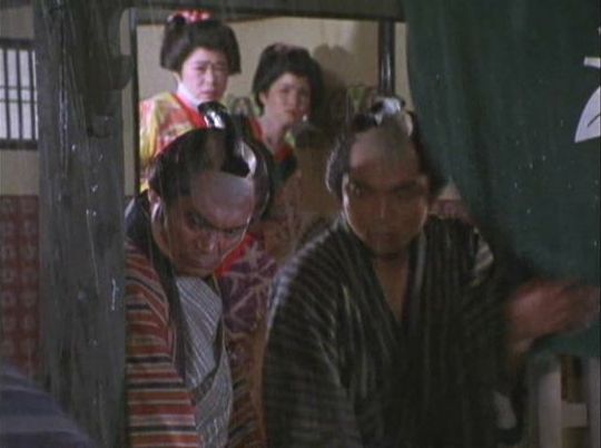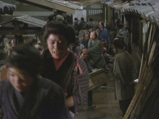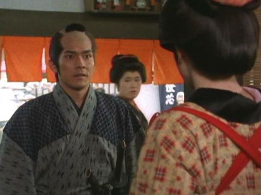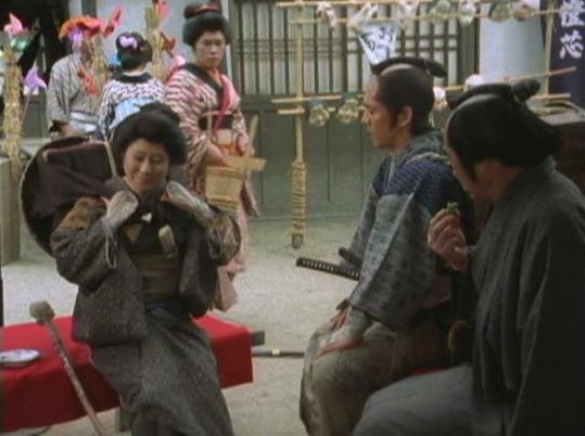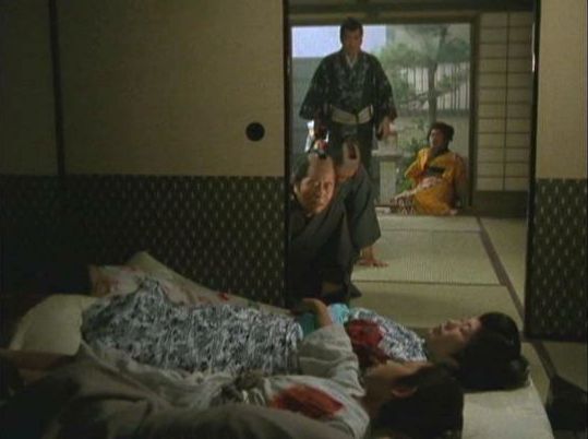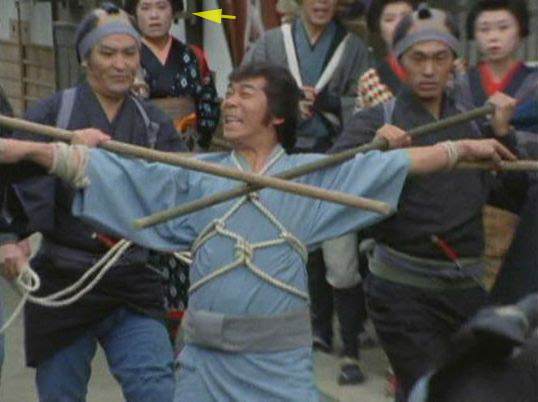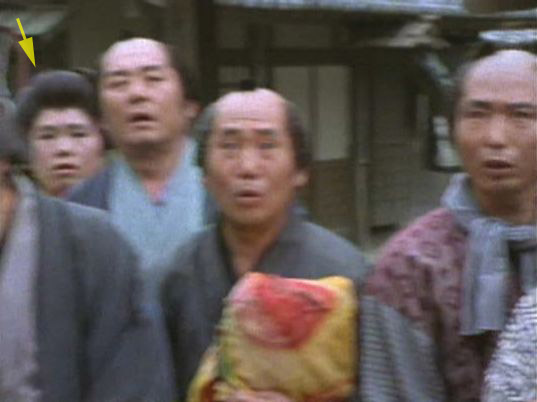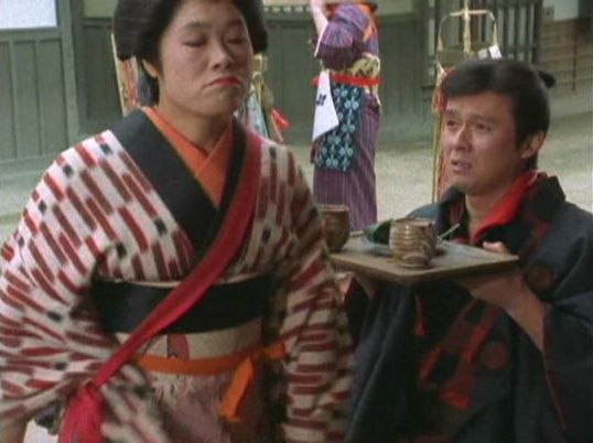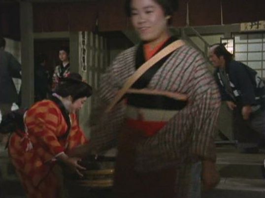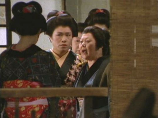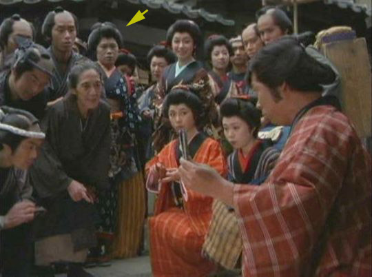 | 「長七郎江戸日記」の「第94話 古傷」(1986年)の原田清子らしき人。右端の人。(中央の女優さん、なかなか美人) |