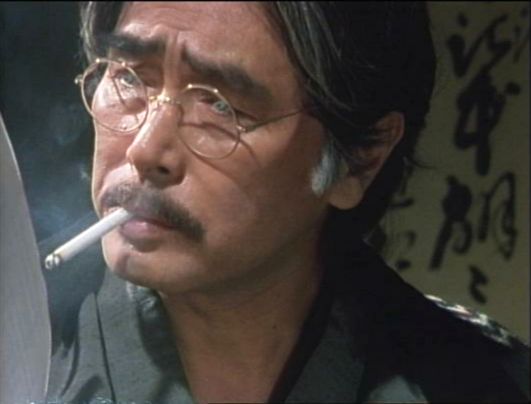 | 「痛快!河内山宗俊」の「第1話 一世一代の大芝居」(1975年)の原田芳雄。準レギュラー出演。 |