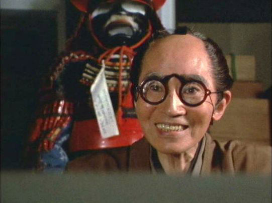 | 「夫婦旅日記・さらば浪人」の「第21話 われこそは花嫁の父」(1976年)。入れ歯を外しての出演。 |