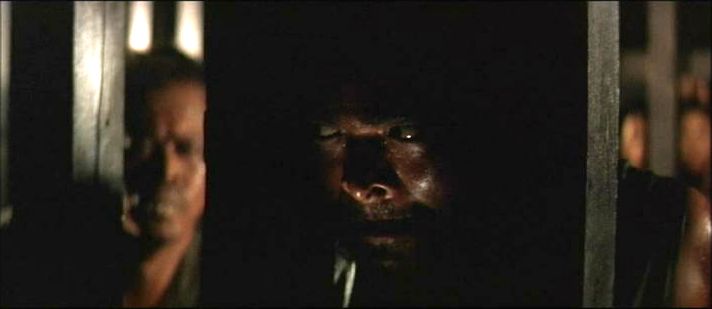 | 「眠狂四郎人肌蜘蛛」(1968年)の森内一夫。クレジットあり。特殊メイクの牢番が森内一夫らしい。 |