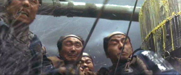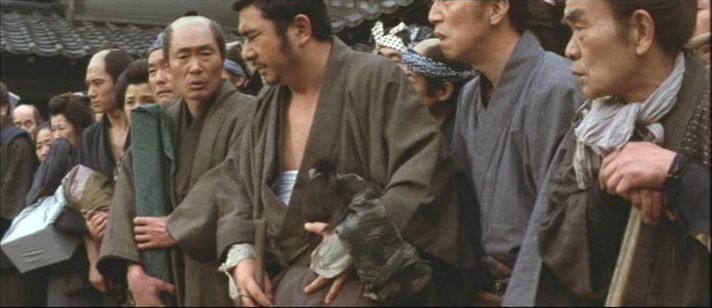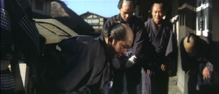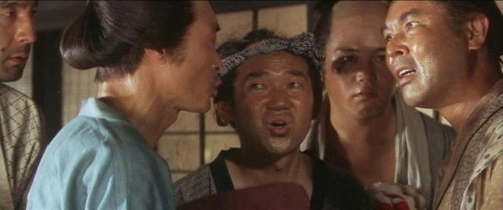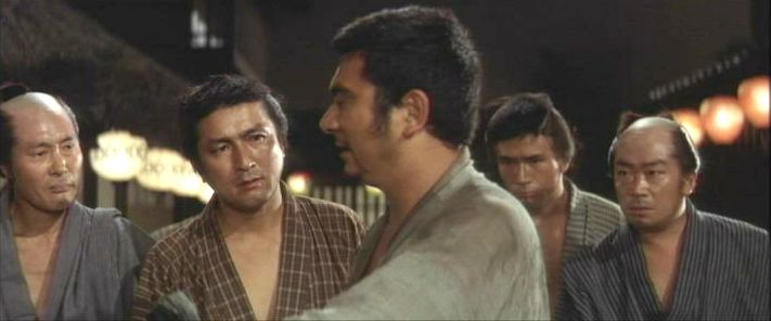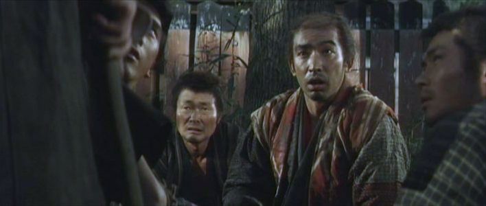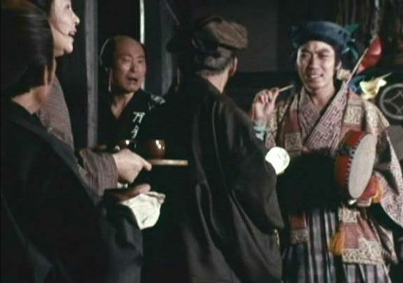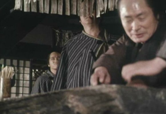 | 「座頭市物語」の「第6話 どしゃぶり」(1974年)の大杉潤。中央左の人。 |