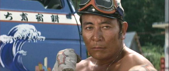 | 映画「新網走番外地 嵐呼ぶダンプ仁義」(1972年)の山本麟一。すごいガタイだ。 |