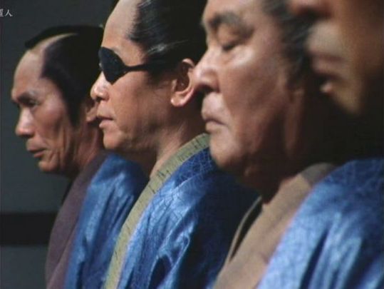 | 「おしどり右京捕物車」の「第8話 囲(かこむ)」(1974年)の沖時男。右端の人。 |