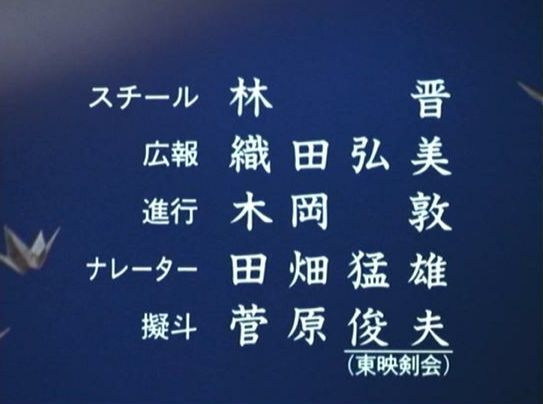 | 「暴れん坊将軍IV」の「第46話 男一匹!め組の紋次郎が燃えた!!」(1992年)の田畑猛雄。 |