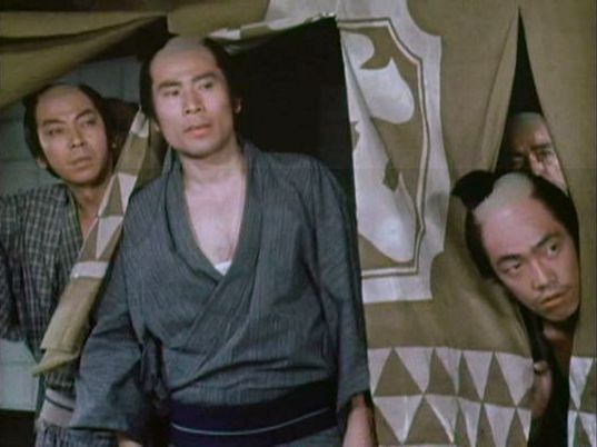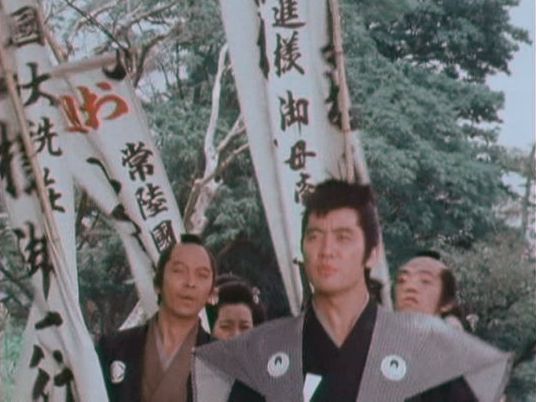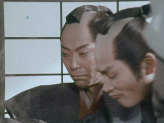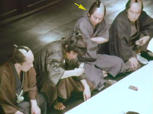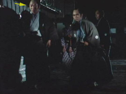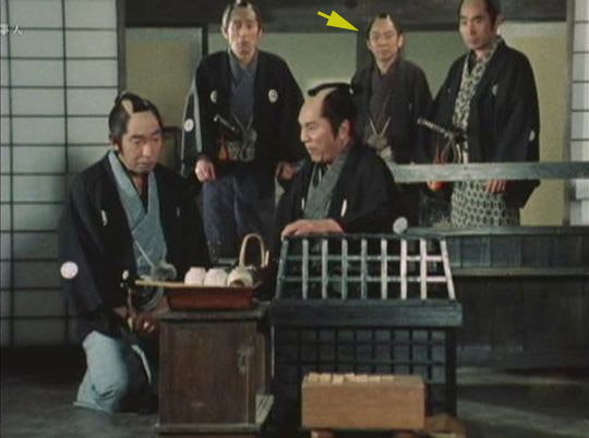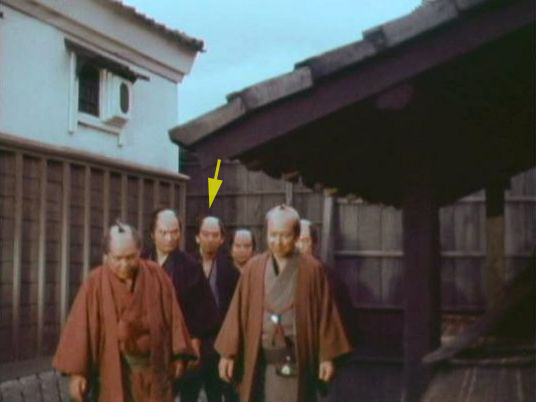 | 映画「忠臣蔵 櫻花の巻・菊花の巻」(1959年)の辻喬次郎らしき人。クレジットなし。 |