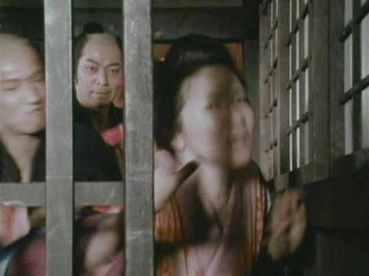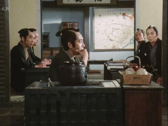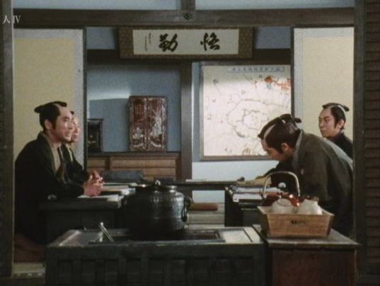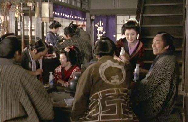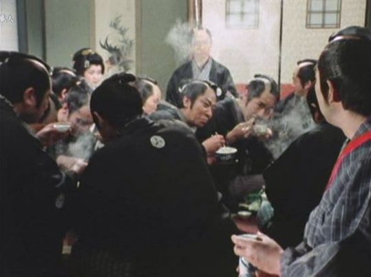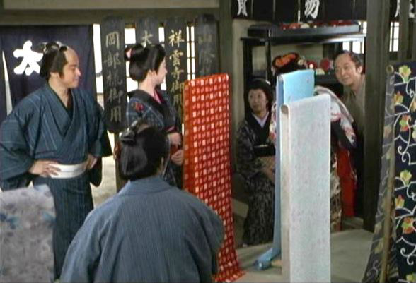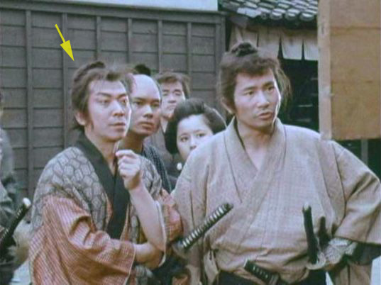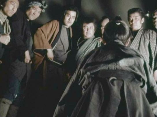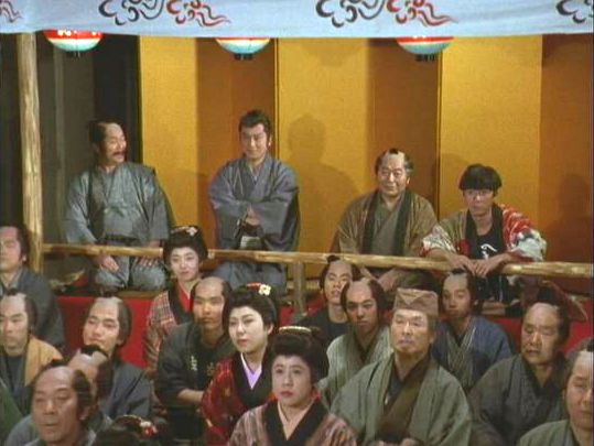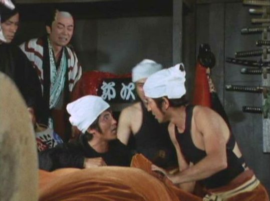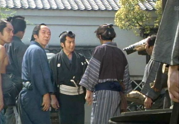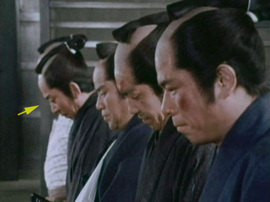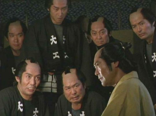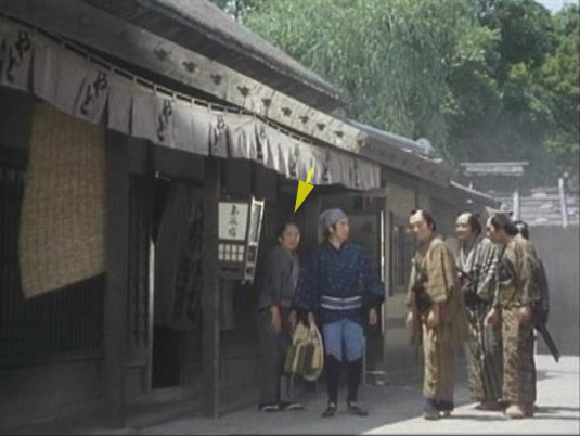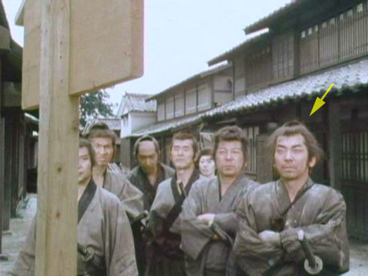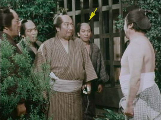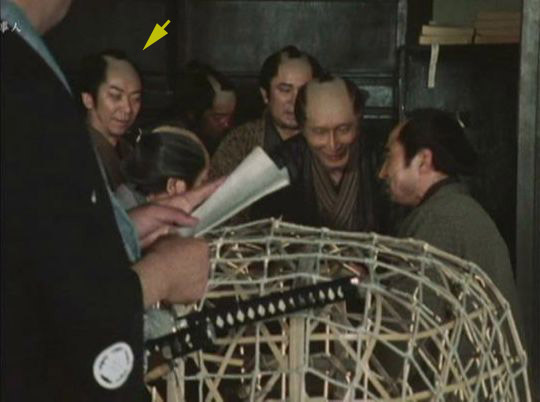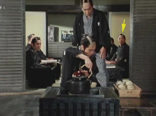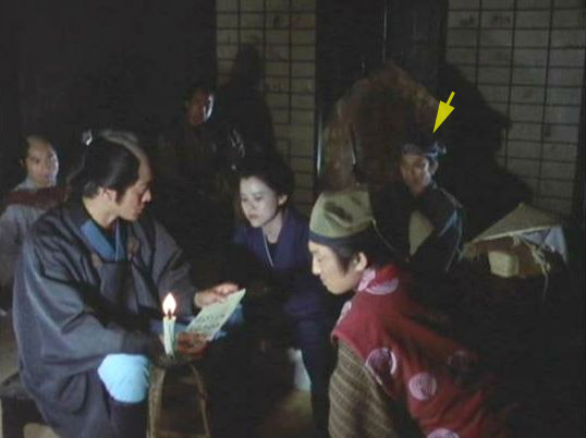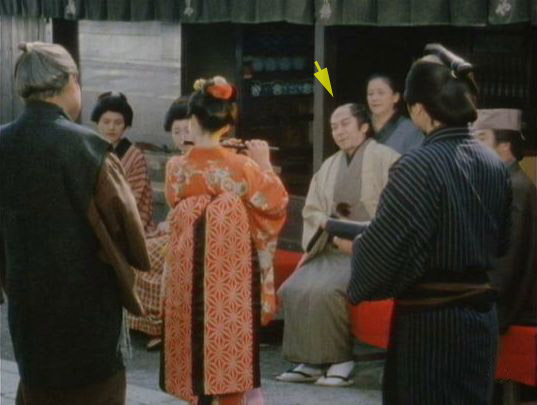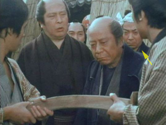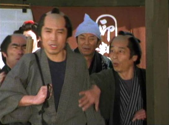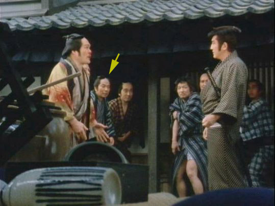 | 「痛快!河内山宗俊」の「第14話 鉄火肌一番まとい」(1976年)の辻喬次郎らしき人。右端の人。 |