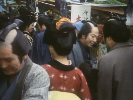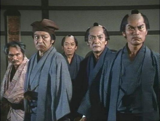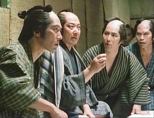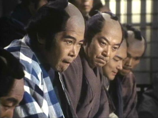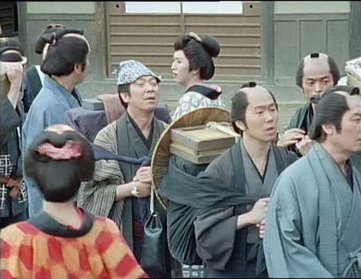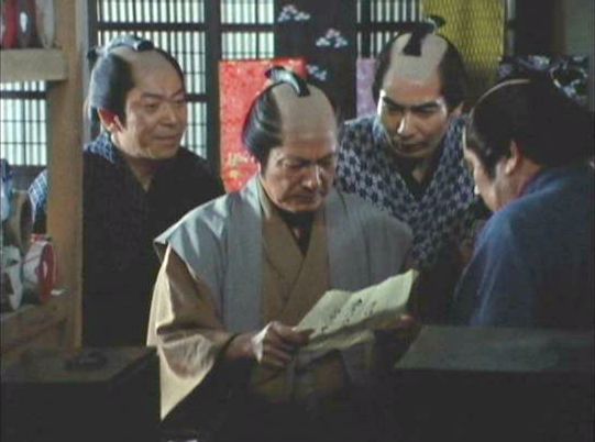 | 新必殺仕事人「第38話 主水女の節句に遠慮する」(1982年)の辻喬次郎らしき人。中央の人。 |