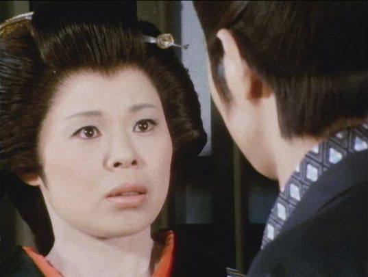 | 「右門捕物帖」の「第15話 殺しの株札」(1974年)の市原悦子。 |