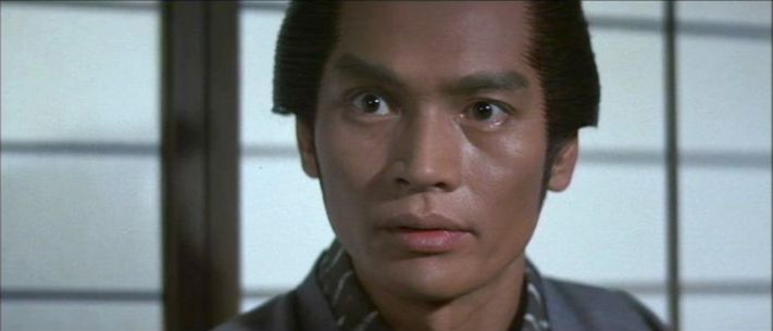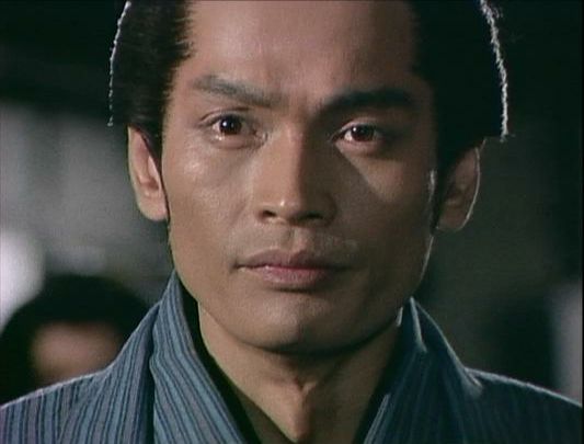 | 必殺仕置屋稼業「第9話 一筆啓上偽善が見えた」(1975年)の寺田農。珍しいことにセリフは全部関西弁。 |