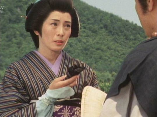 | 「服部半蔵 影の軍団」の「第1話 虎は嵐に爪をとぐ」(1980年)の志乃原良子。 |