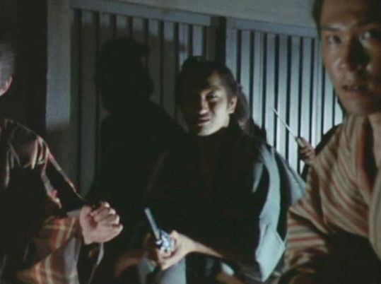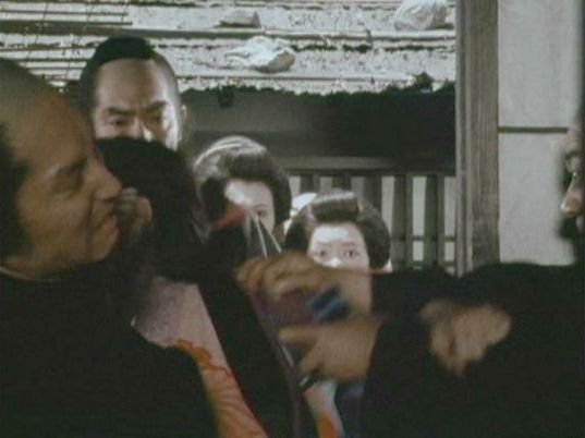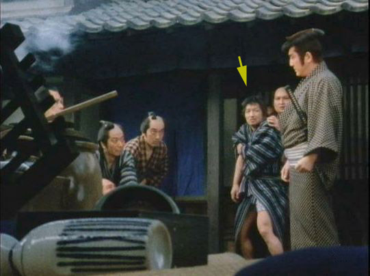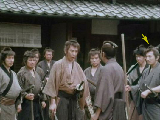 | 「おしどり右京捕物車」の「第13話 砲(ほう)」(1974年)の橋本和博。左端の人。 |