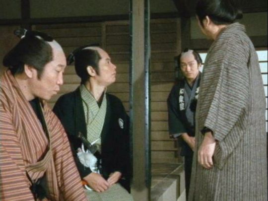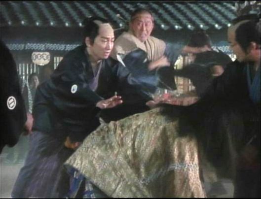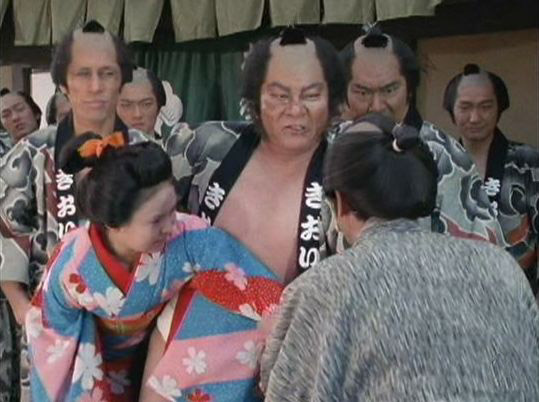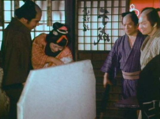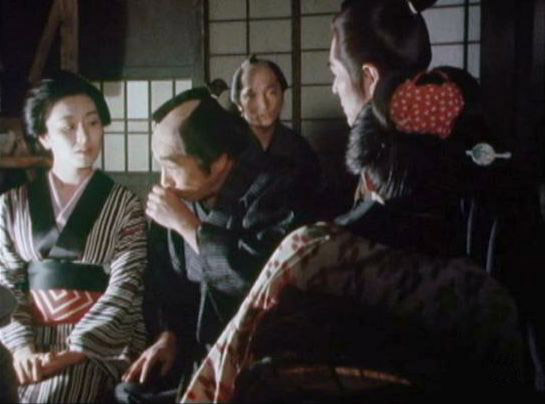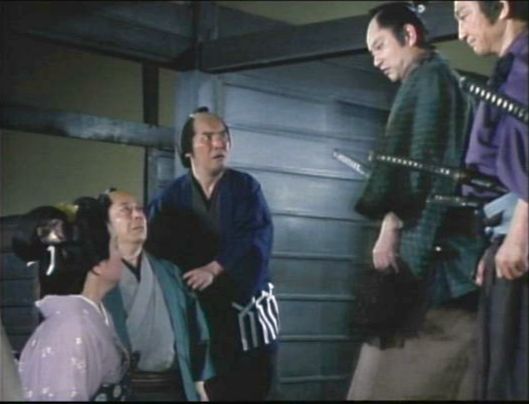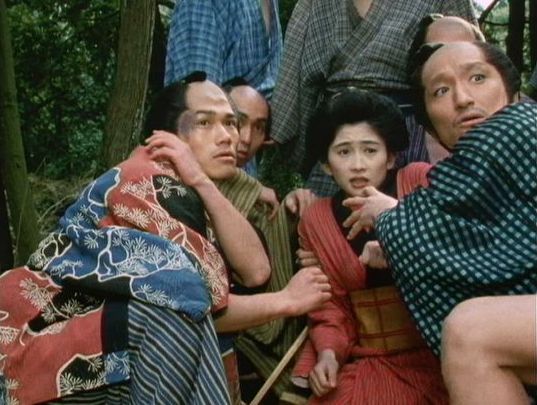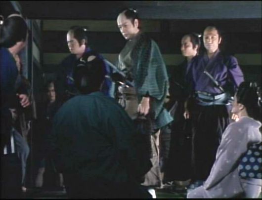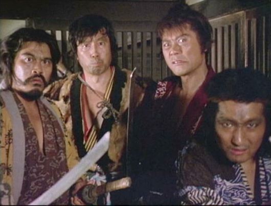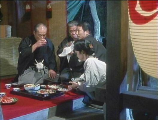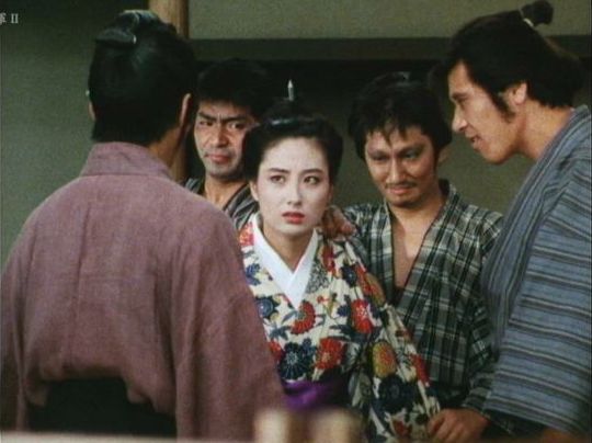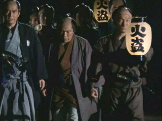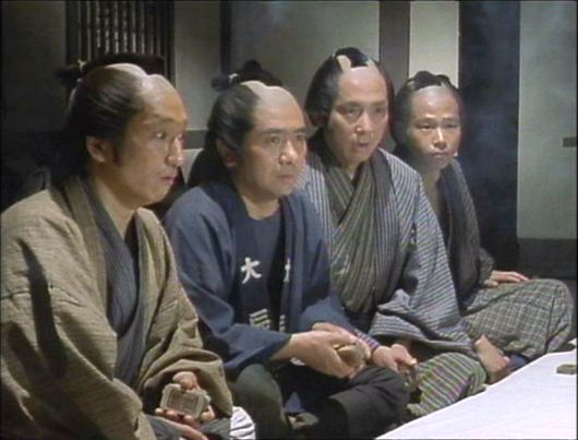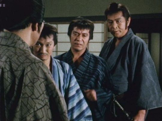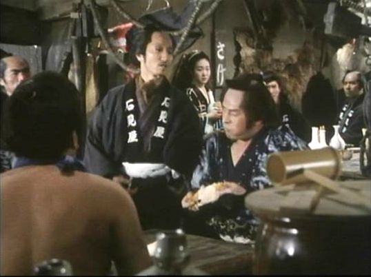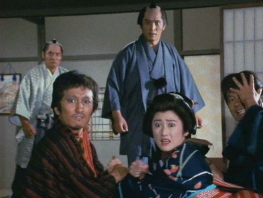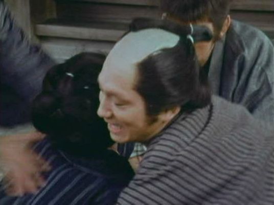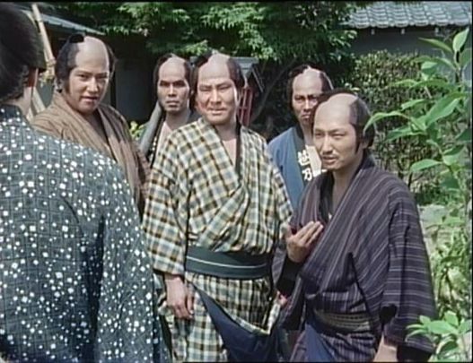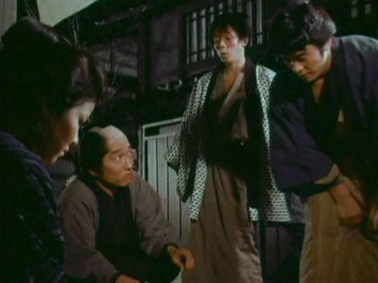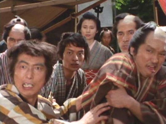 | 「痛快!河内山宗俊」の「第17話 火と燃えよ 恋のかよい路」(1976年)の橋本和博。右端の人。 |
